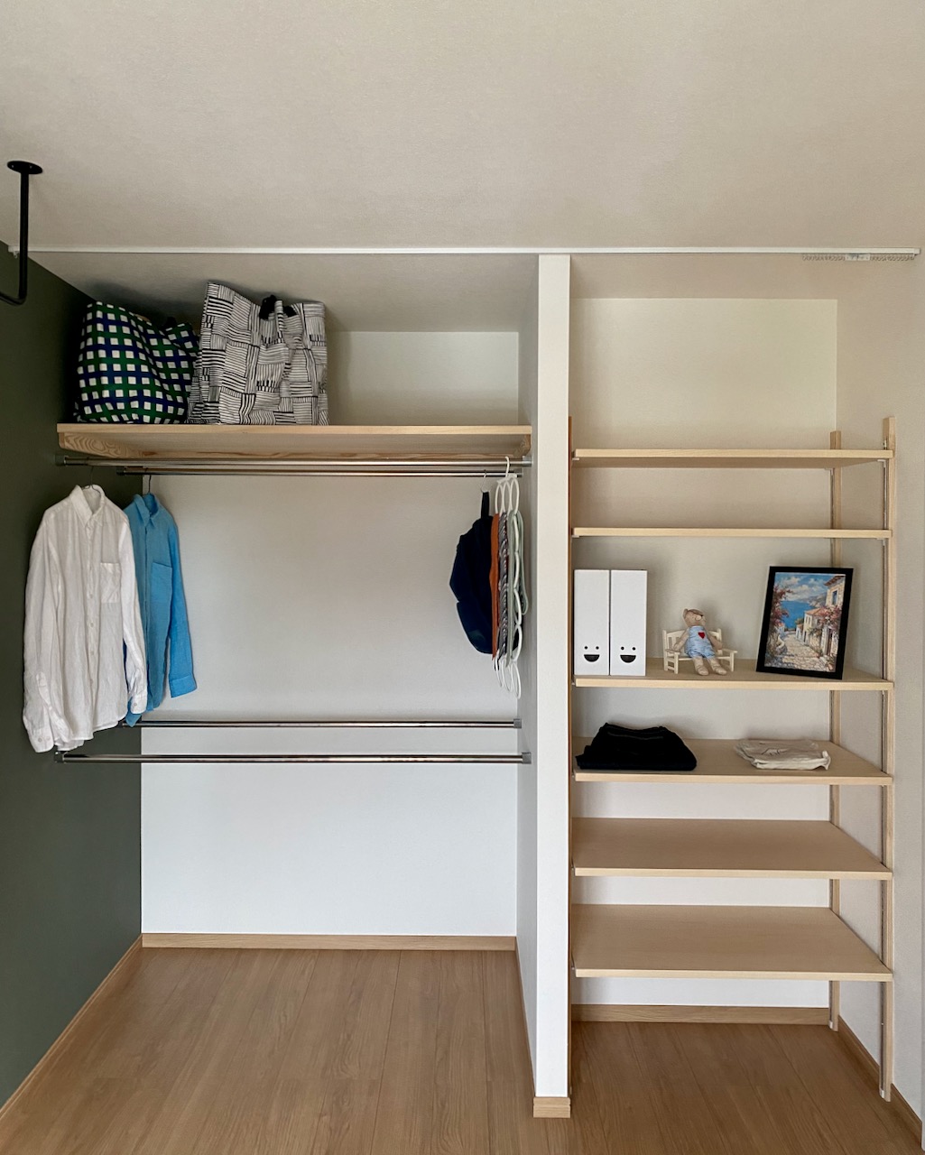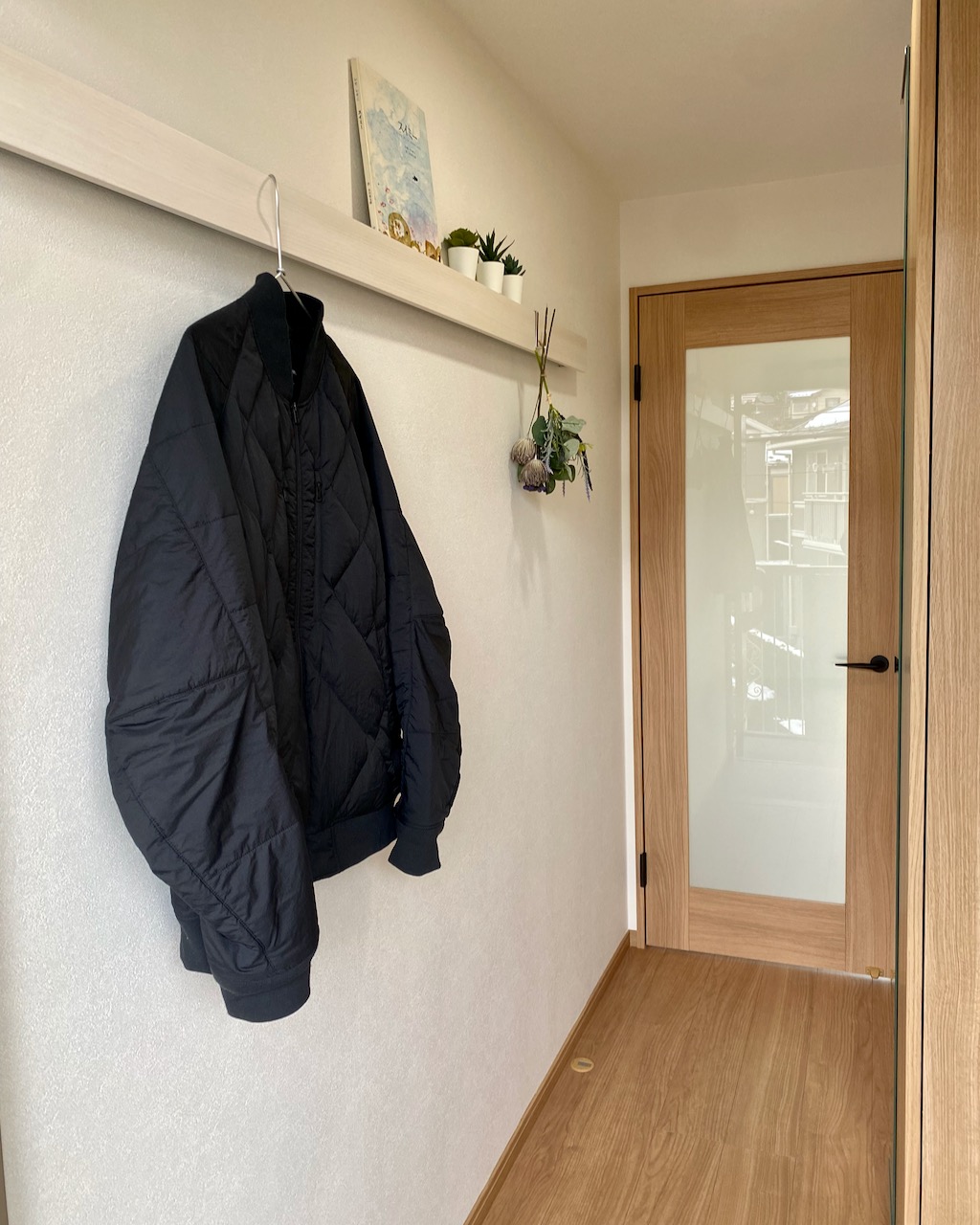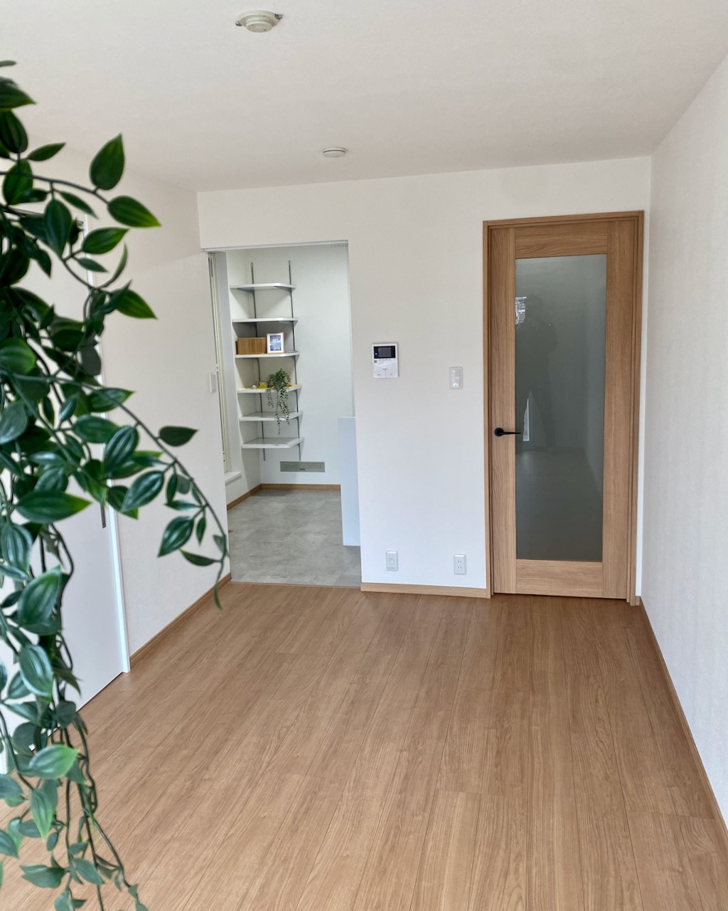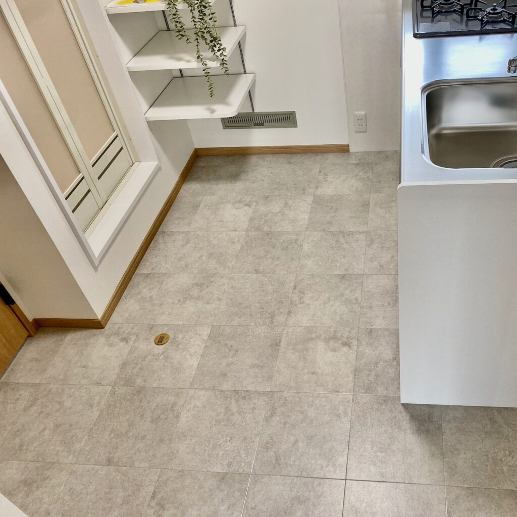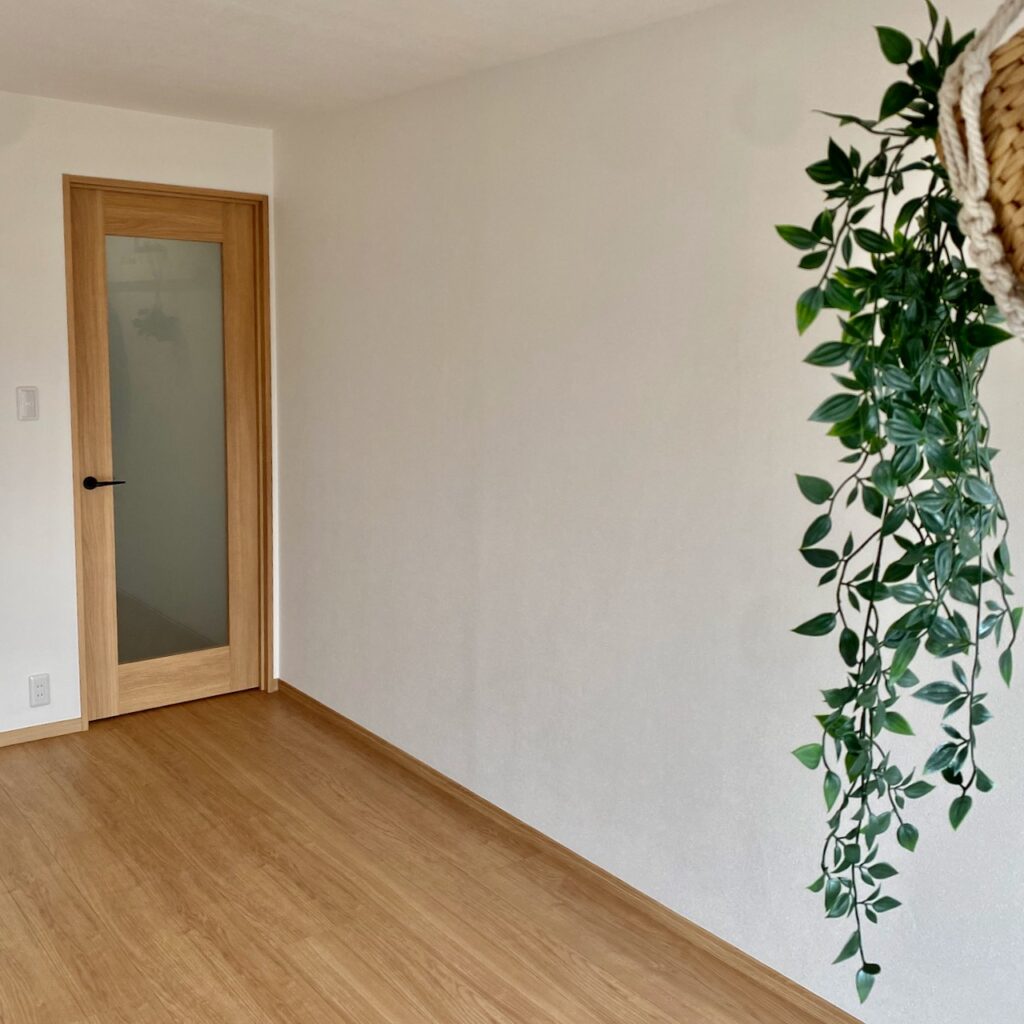 おさまりがいい、というのがこのお部屋の印象です。家具の配置もしやすく、冷蔵庫置き場も広い。洗濯機置き場や下駄箱は拡張したり位置を変えたりしましたが、ちょっとした施工でゆとりを持たせることができました。